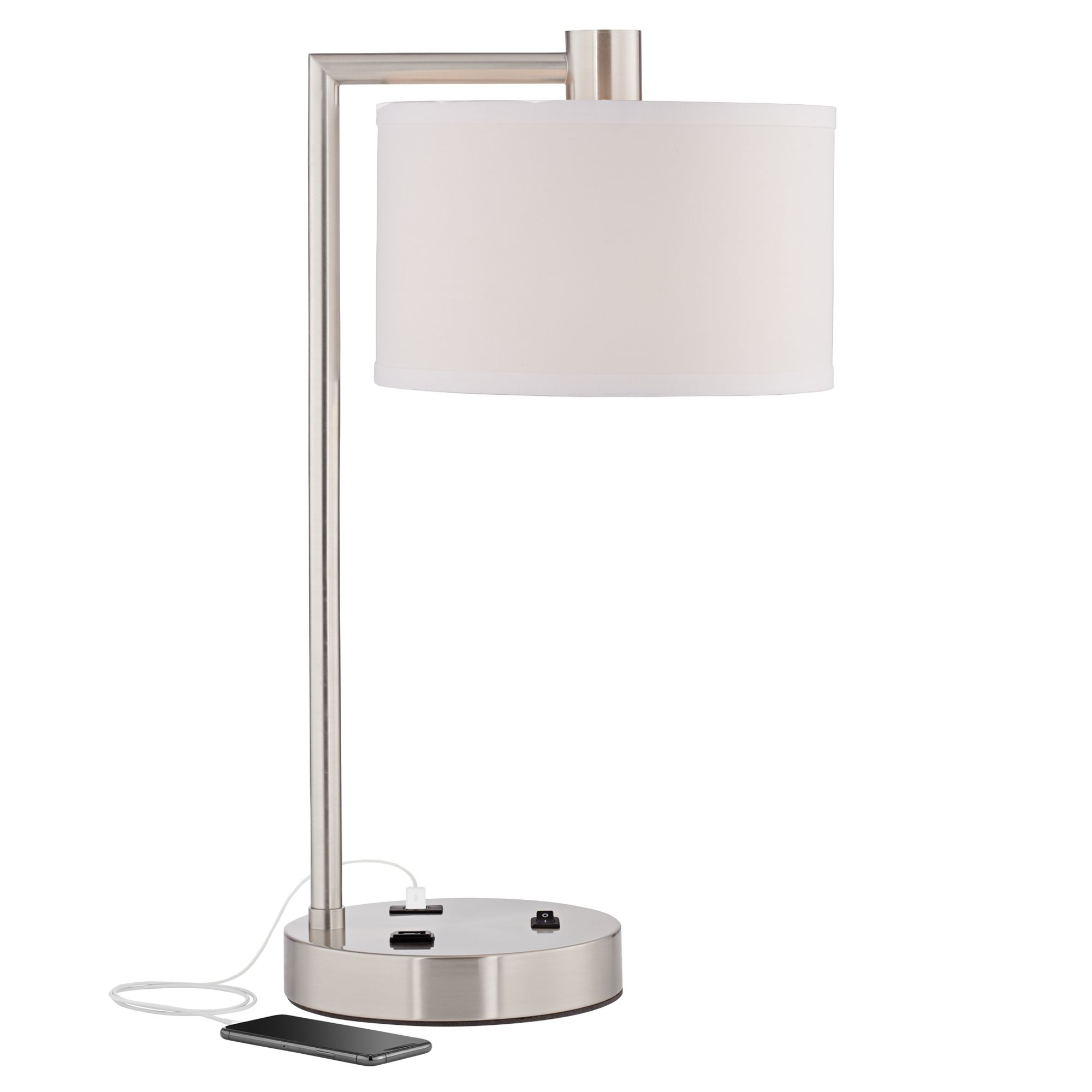 Discover (and save!) your own pins on pinterest Colby brushed nickel desk lamp is a workstation desk lamp which is paired with a white linen drum shade and brushed nickel metal finish. Usb rated at 2 amps. Colby brushed nickel desk lamp with outlet and usb port perfect on a side table, nightstand or home office, this workstation desk lamp is paired with a white linen drum shade. Drum shade is 6 1/2 high x 10 1/2 wide. 5 out of 5 stars. Caper brushed nickel tray table floor lamp with usb port and outlet. Drum shade is 6 1/2 high x 10 1/2 wide. Modern outlet bedroom bedside nightstand $99.99 view on amazon read review. Modern outlet brushed nickel bedroom $99.99 view on amazon read review. Style # 8n535 at la… Browse 330 available at lamps plus! Black desk lamp with charging outlet and usb port fabric shade (set of 2) (black) overstock $ 93.49.